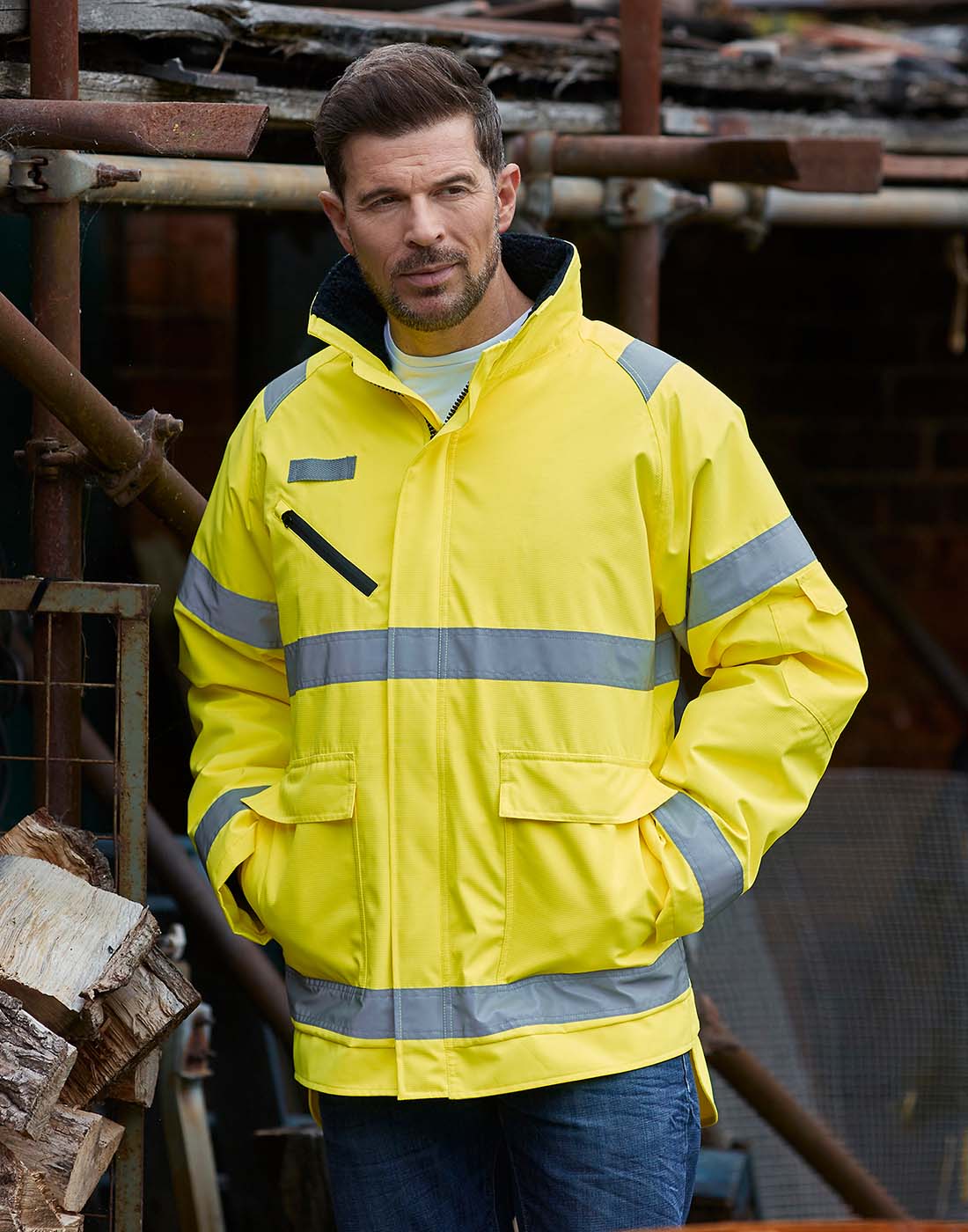 - Twin stitched 5cm retro-reflective tapes around the body, arms and shoulders